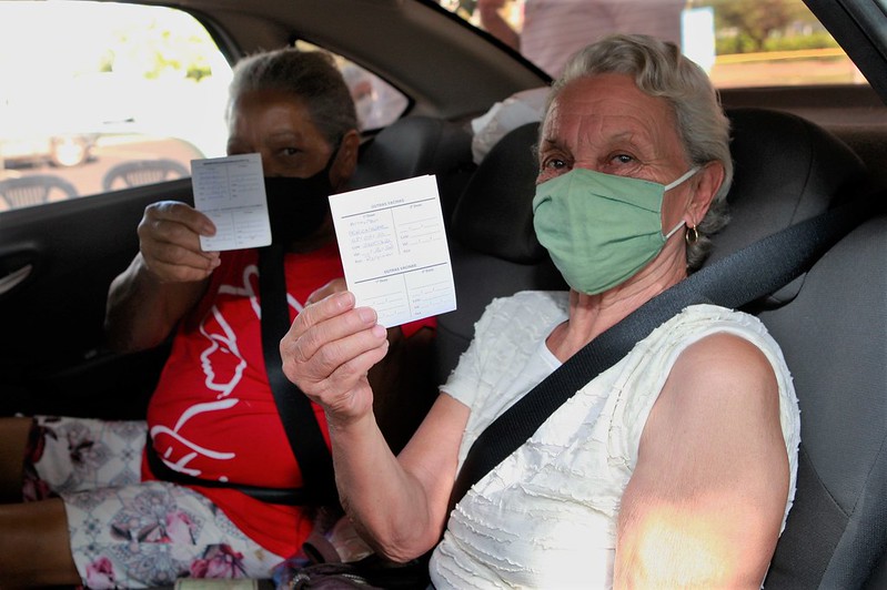 Neste domingo (28), a Secretaria Municipal de Saúde deu continuidade à imunização contra a covid-19 em idosos de 73 anos. 1.418 vacinas foram aplicadas, das 8h às 18h, por meio da estrutura em formato drive-thru montada no estacionamento do Centro Administrativo.