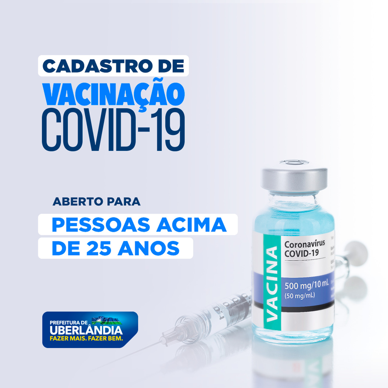 A Prefeitura de Uberlândia abre, nesta quinta-feira (12), o cadastro para público em geral com idade acima de 25 anos. O cadastro é feito no Portal da Prefeitura. A ampliação da faixa etária é resultado do empenho da administração municipal que não tem medido esforços para agilizar a imunização dos integrantes dos grupos contemplados pelo Plano Nacional de Operacionalização da Vacinação.