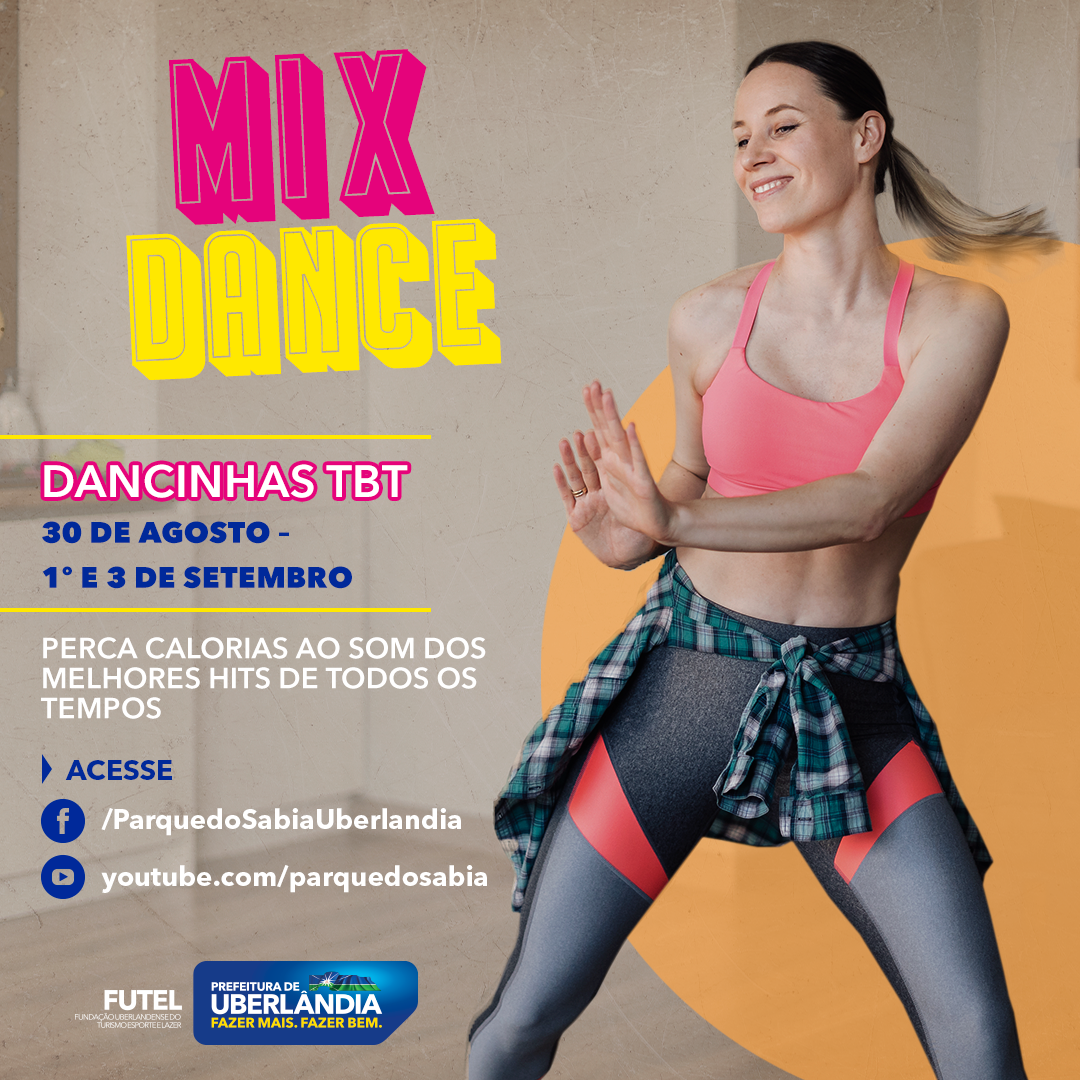 Ao longo desta semana, a Fundação Uberlandense do Turismo, Esporte e Lazer (Futel) promove aulas on-line especiais de mix dance, com a temática “Dancinhas do TBT”. A atividade vai ao ar nesta segunda-feira (30), quarta (1º) e sexta (3), a partir das 18h30, no canal do Parque do Sabiá no YouTube (www.youtube.com/c/parquedosabia). Para quem preferir assistir às aulas em outro horário, os vídeos continuarão disponíveis no YouTube e o link para as aulas será compartilhado na página do Parque do Sabiá, no Facebook.