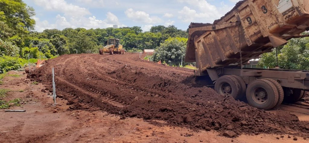 Seguindo o programa de melhorias na mobilidade urbana, a Prefeitura de Uberlândia segue com as obras de construção da ponte na avenida dos Mognos, sobre o rio Uberabinha. Nesta terça-feira (23), como parte da obra, foram realizados os trabalhos de terraplanagem do prolongamento da avenida dos Mognos, além do início do desmonte da estrutura metálica de escoramento da ponte.
