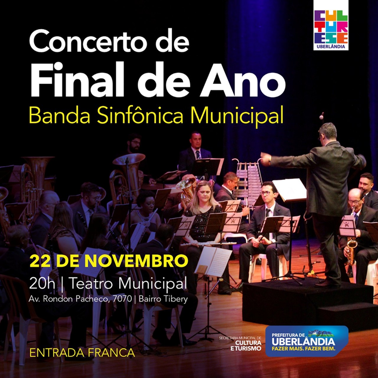 Para celebrar mais um ano que se passa e dar as boas-vindas ao ano de 2023 que aponta no calendário, a Prefeitura de Uberlândia, por meio da Secretaria Municipal de Cultura e Turismo (SMCT), presenteia toda população com uma noite de gala. Na próxima terça-feira (22), o Teatro Municipal sediará o Concerto de Final de Ano, apresentado pela tradicional Banda Sinfônica Municipal.