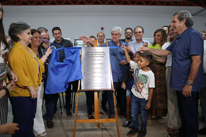 Reforçando o compromisso da Prefeitura em promover o amplo acesso à educação regular de qualidade, o prefeito Odelmo Leão inaugurou, na tarde desta sexta-feira (10), a primeira escola municipal de Uberlândia de ensino fundamental e com atendimento em período integral. Denominada Escola Municipal Doutor Afranio de Freitas Azevedo, a Escola de Tempo Integral está localizada no bairro Grand Ville, região leste, e tem capacidade para atender 700 estudantes do 1º ao 5º ano. As aulas no tempo regular de ensino começaram nesta semana e as turmas com horário estendido terão início em 28 de fevereiro, após seleção entre os matriculados.