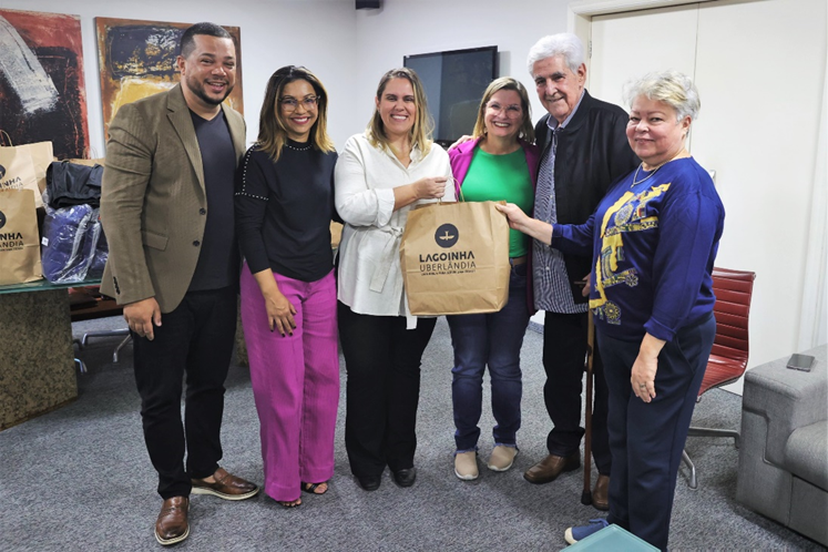 A entrega aconteceu no gabinete do prefeito Odelmo Leão, que recebeu os pastores Valter e Eliane Procópio e as demais representantes da Igreja Batista, Viviane Marsi e Elaine Naves. Na ocasião também recepcionaram as doações a secretária responsável pela pasta, Iracema Marques, que participou via remoto; e as demais integrantes da secretaria, Kátia Guimarães e Nayza Frattari. O encontro foi acompanhado pela deputada federal Ana Paula Junqueira Leão.