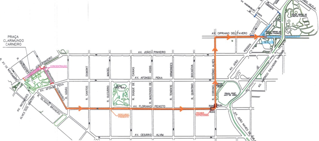 A concentração para o evento vai ocorrer na praça Clarimundo Carneiro, com interdições no entorno das 13h às 17h. O destino final será a praça Sérgio Pacheco, onde também haverá interdição nos arredores das 17h às 19h. Durante o evento, outras vias do Centro terão interdições parciais.