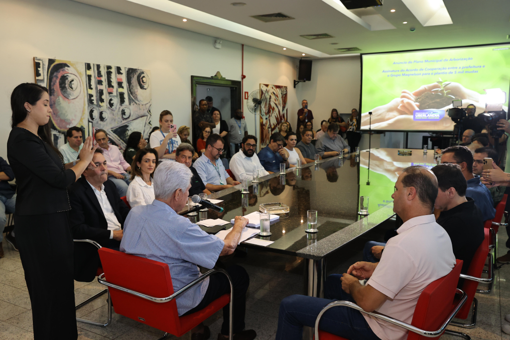 Com o objetivo de seguir oferecendo à população condições de desenvolvimento com sustentabilidade, qualidade de vida e equilíbrio ambiental, o prefeito Odelmo Leão assinou, nesta terça-feira (29), o decreto que institui o Plano Municipal de Arborização Urbana, instrumento da Política Municipal de Meio Ambiente que entrará em vigor após publicação no Diário Oficial do Município. Durante o evento, a Prefeitura de Uberlândia ainda firmou acordo de cooperação com o Grupo Maqnelson para plantio de 5 mil mudas.