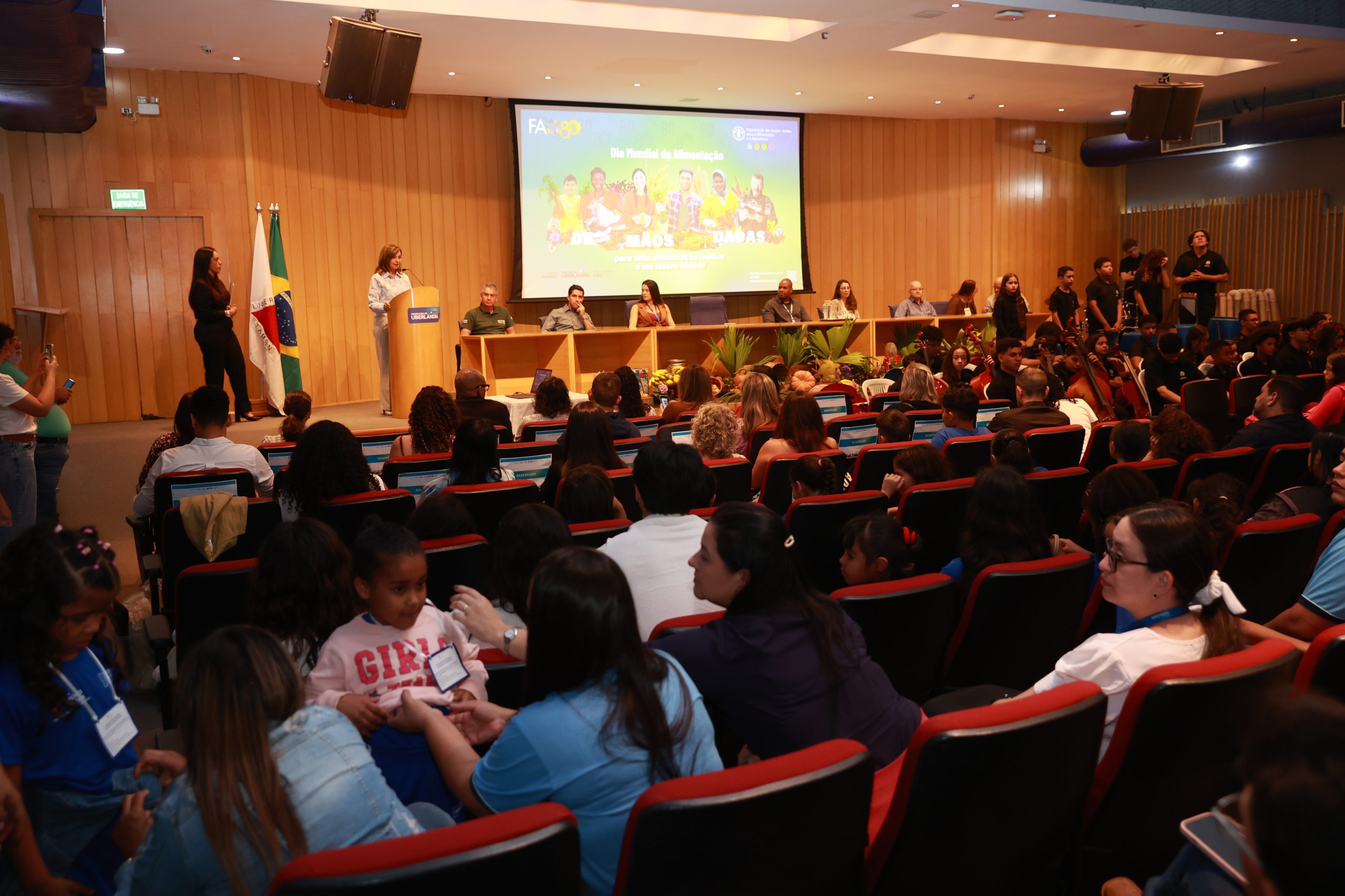 Em comemoração ao Dia Mundial da Alimentação, celebrado em 16 de outubro, a Prefeitura de Uberlândia, por meio da Secretaria Municipal de Educação, realizou diversas ações voltadas à valorização da alimentação saudável e sustentável nas escolas da rede municipal, reforçando o compromisso do prefeito Paulo Sérgio com a melhoria contínua da educação e das condições oferecidas aos alunos das escolas municipais. O objetivo do “Evento em Comemoração ao Dia Mundial da Alimentação”, promovido nesta terça-feira (21), foi ressaltar e fortalecer a importância da nutrição equilibrada no desenvolvimento dos estudantes e destacar o papel da agricultura familiar no fornecimento dos alimentos que compõem a merenda escolar.