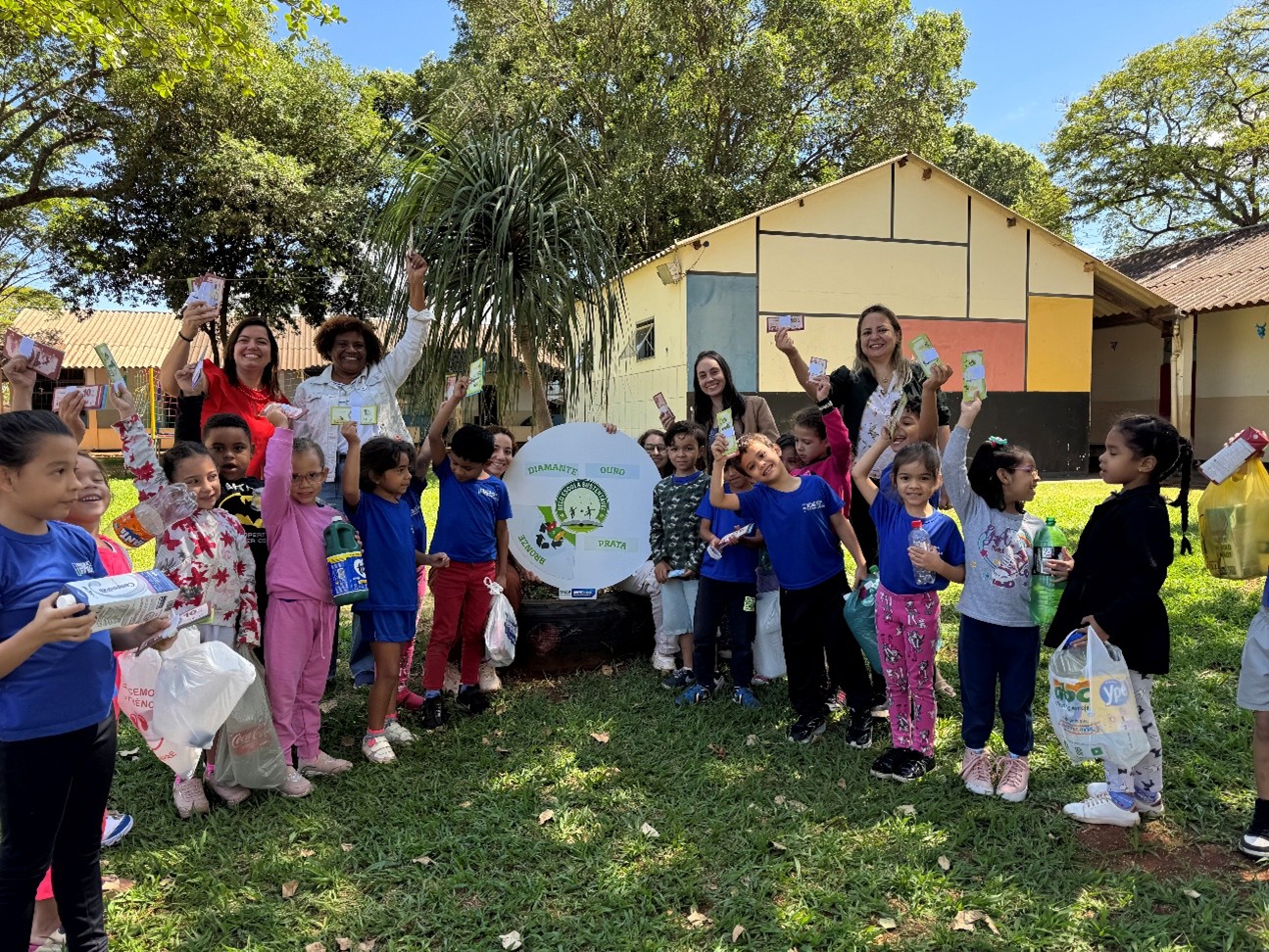 Além disso, segundo a professora Gracielle Mendonça, da Emei Eurípedes Rocha, no bairro Presidente Roosevelt, os alunos estão muito empolgados com o recebimento do Selo e, agora, vão em busca dos demais. “Nós estamos muito orgulhosos por receber o Selo Bronze, pelo nosso trabalho na coleta seletiva, que é a dos materiais reciclados. Nossos alunos também estão muito empolgados por participarem desse projeto e vamos rumo ao Selo Diamante agora. Vamos passar pelo Prata, pelo Ouro e rumo ao Diamante já”, disse.