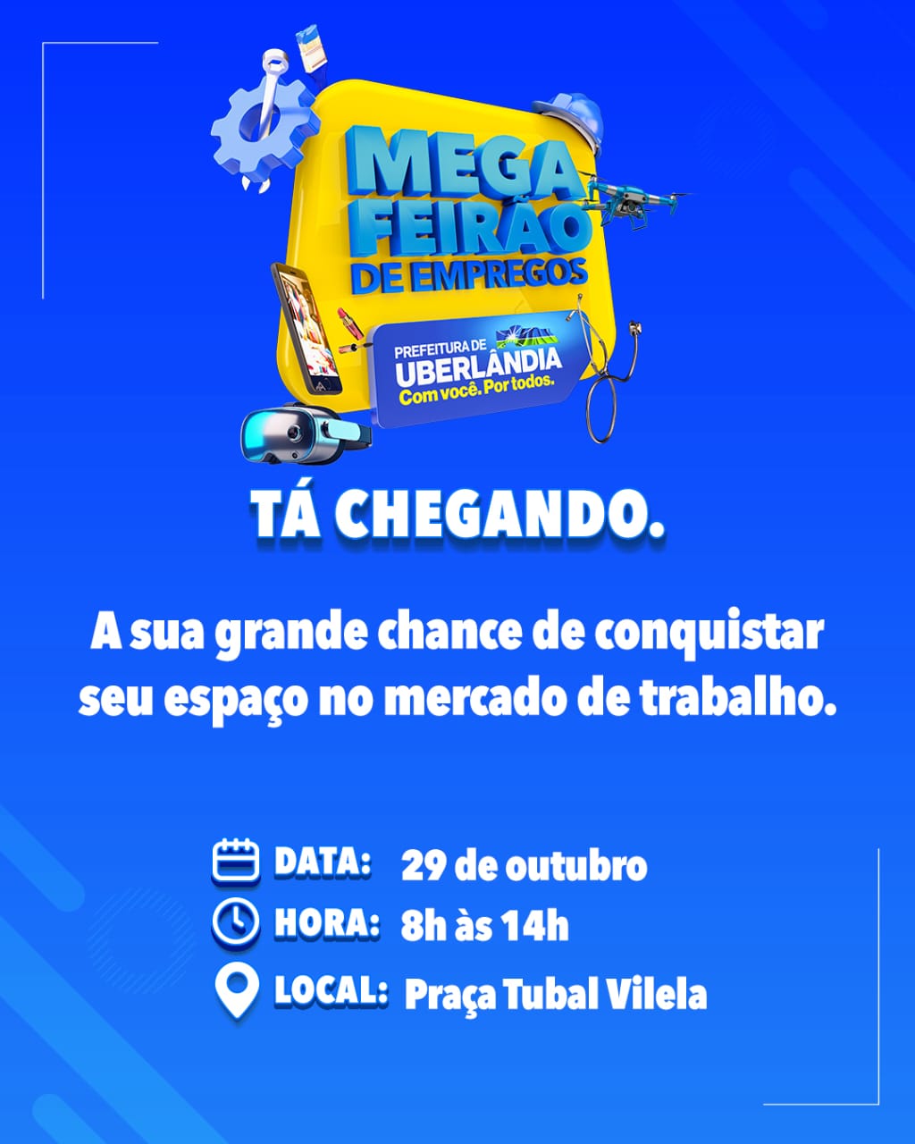 3ª edição do Mega Feirão de Empregos acontece nesta quarta (29) na praça Tubal Vilela com 6,7 mil vagas