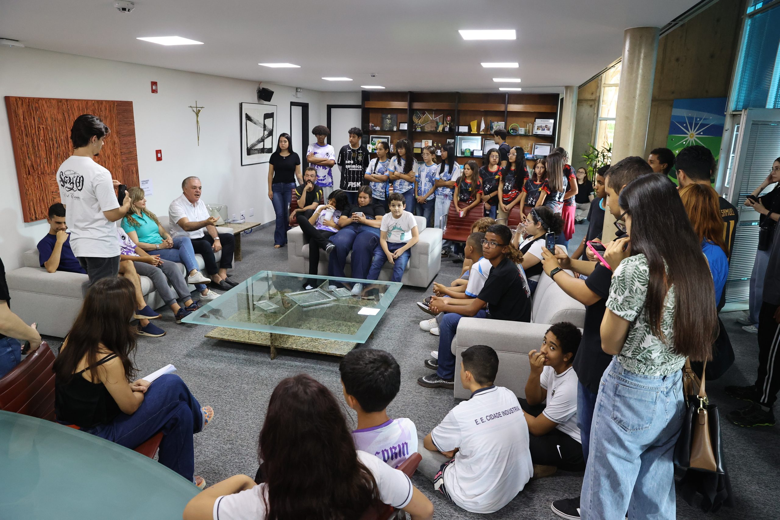 As últimas turmas desta edição 2025 foram da Escola Estadual da Cidade Industrial, que estiveram na sede do Poder Executivo Municipal nesta sexta-feira. Ao todo, 47 estudantes acompanhados por professores tiveram a oportunidade de entender, na prática, como funciona a sede do Poder Executivo Municipal, com suas secretarias e autarquias atuando para melhorar a qualidade de vida da população. O prefeito Paulo Sérgio recebeu os alunos e professores no Centro Administrativo Municipal.
