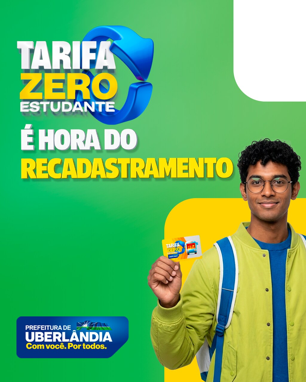 A Prefeitura de Uberlândia, por meio da Secretaria Municipal de Trânsito e Transportes (Settran) e da Ubertrans, começa uma nova etapa de atualização cadastral dos beneficiários da Tarifa Zero para estudantes, conforme determina a legislação que regulamenta o acesso ao benefício. O recadastramento será feito exclusivamente de forma virtual, por meio do aplicativo Ubetrans-Supersit, disponível para download nas lojas digitais (iOS e Android), no período de 26 de janeiro até o dia 26 de março.