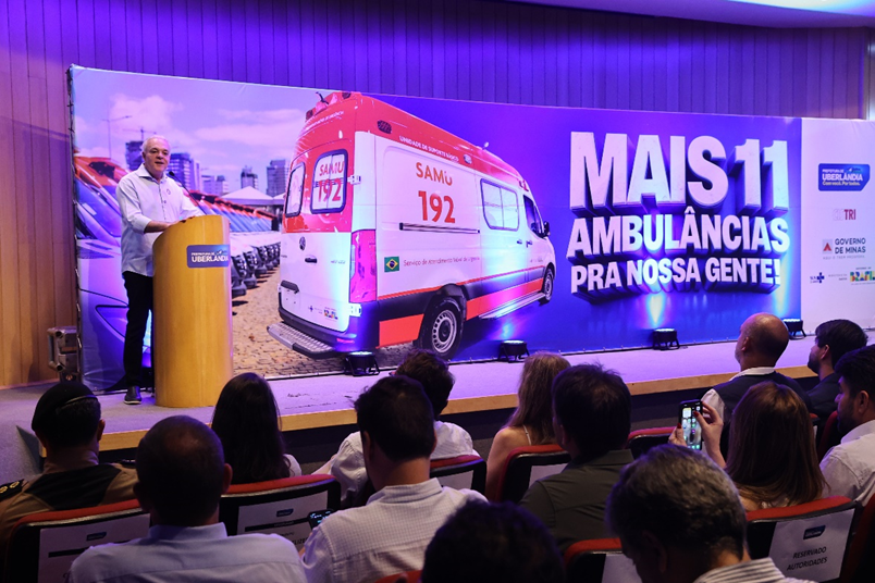 Em continuidade ao cronograma de ações da Prefeitura de Uberlândia para a implementação do Serviço de Atendimento Móvel de Urgência (Samu) na cidade, foram recebidas, nesta segunda (9), as 11 novas ambulâncias que contemplarão a frota do Consórcio Intermunicipal de Saúde da Rede de Urgência e Emergência da Macrorregião Triângulo do Norte (Cistri). A cerimônia de entrega aconteceu no Centro Administrativo Municipal. As ambulâncias foram repassadas pelo Ministério da Saúde ao Governo Estadual de Minas Gerais, que cedeu os veículos ao Cistri.