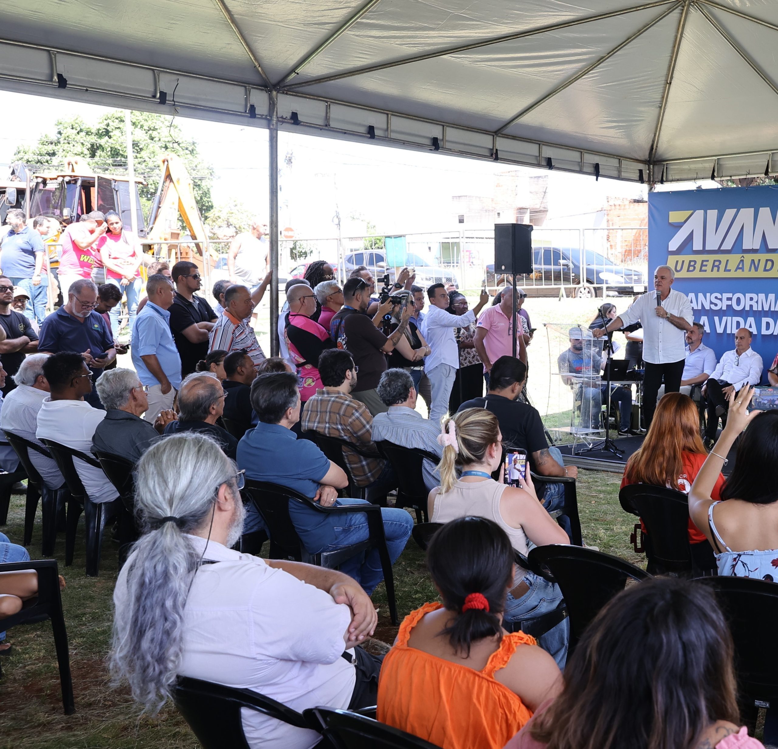 A Prefeitura de Uberlândia iniciou, nesta quinta-feira (16), uma etapa histórica de estruturação do bairro Élisson Prieto, antigo assentamento Glória, localizado na região sul da cidade. Com investimento de, aproximadamente, R$ 55,7 milhões, a Prefeitura de Uberlândia, por meio do prefeito Paulo Sérgio, assinou a ordem de serviço para o início das obras de infraestrutura no Élisson Prieto. A assinatura ocorreu em solenidade realizada na praça Maria Preta, no bairro. A intervenção levará redes de esgotamento sanitário, drenagem pluvial e pavimentação, beneficiando, diretamente, mais de 6 mil moradores da região. Essas obras fazem parte do “Avança Uberlândia”, maior pacote de obras e projetos estruturais da história da cidade, que é viabilizado pelo Município e foi anunciado pelo prefeito Paulo Sérgio em janeiro deste ano.