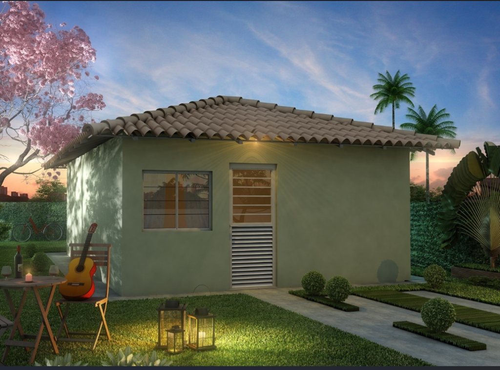 Área em m² das unidades: terrenos de a partir de 160m² com área construída de 47m²